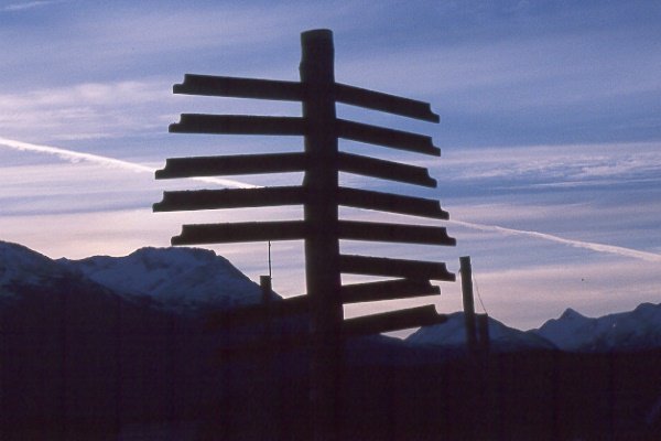 Road sign at Villa O'Higgins, Chile